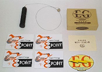 このシステムは、独自で開発した特殊セラミックを内蔵したカプセルを燃料タンク内に沈め、タンク底面にはった”8ポイント”(パワーシート)とのイオン浄化相互作用によりエンジンに供給される空気と燃料を分子レベルで微細化し完全燃焼を誘発する画期的な装置です。