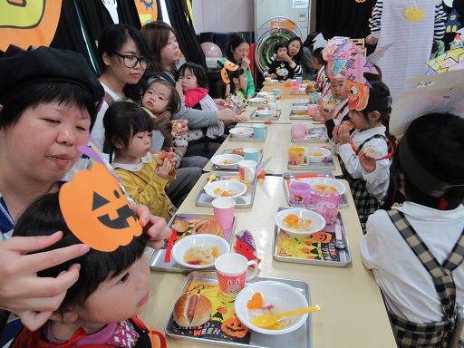 安全で明るいお遊戯室と園庭を開放しています。よみきかせ・手遊びをします。