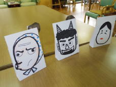本日の出演者オカメ・ひょっとこ・鬼の施設長です。