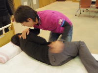 新型機械浴槽の導入により、介護職員の身体的負担が軽減されました。 併せて介護技術の講習会を実施し介護力の向上により、介護者の体を守る知識と、質の高い介護を提供できる技術力の向上を目指して、ユマニテク医療福祉大学校 学科長 伊藤幾代先生より、@介護負担軽減の為の移乗介助 A腰痛予防体操をお教えいただきました。 当日は台風12号の影響により、朝から豪雨でしたが遠方より伊藤先生にご足労いただきました。職員は予定通り20名の参加をして無事に終了できました。 |