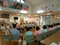榊教室にて学んでいらっしゃる皆様が先生と演奏にきて下さいました。立ち上がりご挨拶下さっている方が先生です。 3時のおやつを挟み2部構成でご披露くださいました。前半は@365歩のマーチ A見上げてごらん夜の星 Bあの娘と野菊と渡し船 C虹色のバイヨン 後半は先生自らオカリナを演奏され、@まっかだな A里の秋 Bもみじ を季節感イッパイに情感豊かに奏でられました。 聴く、ご利用者様も職員も秋の情景の中に誘われ心豊かになりました。 演奏くださいました 皆様 ありがとうございました アルバムサイトへお写真を掲載いたします |