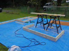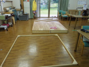 | 10月5日(金)に森の風ようちえん様との交流会が予定されております。 交流会では盆踊りをやろう!と企画が出され踊りの輪、中心にやぐらは必要。有れば盛り上がり方も違うはず。との思いから施設長が張り切って9月29日(土)30(日)の連休を使い日曜大工で仕上げました。 日曜は雨模様の為、塗装まで出来ずに素材無垢のまま本番へ突入となりました。 一生懸命頑張っている様子見てあげて下さい 大まかな計画では、針葉樹構造合板2枚を使い、2×6材で縁を囲い踏み台を作ります。二つ合わせて正方形を作り4.5p角の赤松垂木を柱として、上に4本の柱を覆う正方形の冠を乗せ、そこに紅白の4間幕を垂らして完成です。 踏み台二つは縦に一列にして使うと長さ3m64p幅91pとなり、これからお見えになるボランティア様の舞台として使えます。 ブルーシートを中庭に敷き詰めまずは材料をならべます ![]() ↓これは上に乗せる冠です 四隅には4.5pの柱が入るスペースを作り三角のべニア板で覆いました ![]() 2×6材4本に細長い10pほどの穴を開けましたのは踏み台を運ぶための↑↓持ち手部分 ↓踏み台の枠作り ↓囲いと中心に支え 針葉樹構造合板を貼る↓ ![]() ↑ここまで出来たら雨 雨の水入りにて土曜日の作業はこれまで ↓日曜日は雨の為軒下にて面取り作業 ↓室内に搬入 ![]() 室内にて組立 問題点を探る ![]() ↓柱の支えに鉄板を使い強化 ↓踏み台はずれない様にジョイント 本番での組み立て ![]() 園児さんもお気に入り たくさんの園児さんが やぐらで楽しんで下さいました ![]() やぐら気に入ってくれた?! 森の風ようちえんの皆様 ご来苑ありがとうございました |
