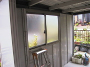 殆ど組みあがり垂直・水平を確認 「ぴったりだ!」 | しまった! あまりにも正確すぎて本体のサッシ網戸が引っ掛かる |