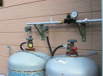 | ガス配管工事 燃料にはプロパンガスを使用 屋外からの引き込みは 保安上の関係から 専門業者にお願いした バーナーへの接続は |