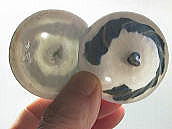 | 湯呑も作ってみました | 表の練込み色土が内側から見えます7g | お遊びにトンボ玉も作りました 鮮やかなコントラストが出ます |