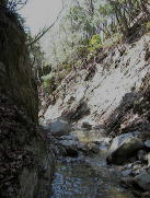 | 普通は水が殆ど流れていないところだが、雨の後なので細い滝になっている。 とても清楚な感じがする |