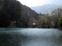 澄んだ湖面からは、小魚が泳ぐ姿が見られる