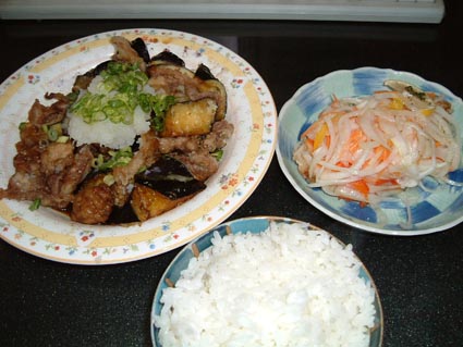 左上が作った「ナスと豚肉の南蛮漬け」。