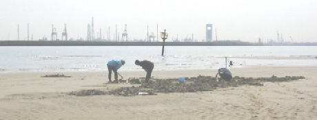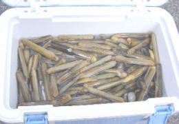 潮干狩り(マテ貝採り)初心者のタゴちゃんに教えつつ、自分も掘り進みます。ふと時計を見ると12:30過ぎ。kikuchanはバケツに1/3になって帰り重くなりそうと思ったのと、お腹が空いたので一旦車に戻りました。みたらし団子を食べて復活して後半戦です。ばしやん、さゆり姫も合流、みんなでワイワイと頑張りました♪