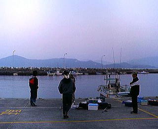 アミーゴス皆で、行ってきましたよ(^^) 田曽浦♪ いつもの船頭さん、幸丸さんで 海は穏やかで、いい感じ(^^) 船頭さんの、「メバルやってみるか? 餌は用意してあるで」の一言で、沖に出てもらいます。湾内は、ベタ凪だったのですが、沖は少しうねりが…ちょっとやばいかも…と思いつつも、「はい、やってぇ〜」の一声で、竿を出します。が、やってきたのは、メバルンルンではなくて…ガシ(ーー;) でも良い型です。何匹か釣るうちに、みずやんが、うねりでギブアップ(>_<) 湾内でキスを狙うことに… |