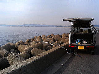 | 日本鋼管へ投げに行ってきました。今回のお供は、素針のスバルじゃなくて、アクティー君です。 今年の投げ釣りを占う気分です。とりあえず、準備をして、「うりゃぁ〜!」と投げてみました。 テンビンが着水して、糸ふけを取って…フルフルッ…可愛いアタリがありました。追い食いを待つのも、もどかしく、巻いてくると可愛いキスが(^^)♪ |