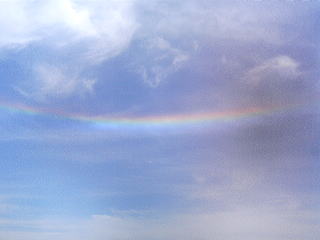 | その後、白塚漁港に移動しましたが、釣れません。「ん?」という、あたりはあったのですが、針に乗ってきませんでした。が、何気に空を見ると、真っ直ぐな虹が…水平環という、珍しい現象だそうです。 |
