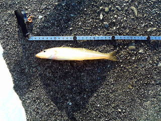 三投目…あれ?引っ掛かったかな?と思い、チョットしゃくったその時です…ビンッと顔にラインが触れたんです。あれ?と思いながらも糸を巻いたら…何か変なんです。よく見たら、トップのガイドが壊れてるじゃないですか(T_T)ここまで来てて、キス一匹では帰れません。ボンドや工具を持ってたかなぁ…と車を物色、応急処置をして投げて見ます。何とかいけそうなので続行しましたが、結局、これでケチが付いちゃったのか、この後はめぼしい釣果は無い上に、糸も切れて…(+_+)11時半頃にあがってきました。