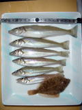 いそいそと、仕掛けから回収できた糸を外して何度か投げました。ほとんど素針を引くことなく、順調に釣れてきます。でもコレは、ちゃんと投げられたとき限定です。3回に1度くらいの高率で、糸がガイドに絡むんです(ーー;) でもまあ、小さなアタリもわかるし、楽しんでたら、隣で釣ってた方に、褒められて…調子に乗ったら、2度目の糸切れ…(T_T) 時間的にもちょうど良かったので、納竿することに…けっこう楽しめた1時間でした(^^♪