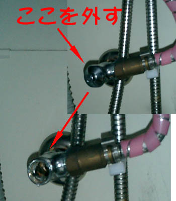 ![]() このようになります。 矢印の所は回す事が出来るのですが、今は思いっきり緩めておいて下さい。 ここがキーポイントですよ〜。(失敗者は語る) 流しの下から見ると右の様になっていますので、配管をここに締め込みます。 その時、シールテープを巻き、100円のパッキンを入れ、配管に付いているゴムパッキンも忘れずに〜 |