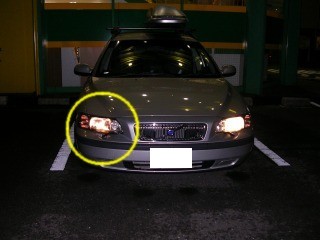 | 2004/10/09(土) | 次の日のF1観戦に備えて買い物に行こうと思い、19:00過ぎに車に乗ってライトを点灯したらインフォメーションウインドウに「バルブキレ ロービーム」とメッセージが出ている。あら?と思い一度ライトを消して再度点灯してみたが一緒。どうやら本当にバルブ切れのようです。降りて確かめてみたら運転席側のロービームが切れているようです。写真で見るとスモールランプが点いているのでわかりにくいかもしれませんが確かに点灯していません。仕方ないのでそのまま走りましたが、走ってみると右半分は暗い。