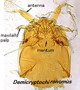 ・Eye spot 3. ・Mandible : a large apical tooth and 2 inner teeth. Seta subdentalis very sharp. ・Procercus short, anal setae 7. |