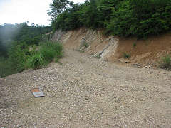 R306ではワイパーを使ったが、時山に入ると雨はやんだ。しかし薮ヶ谷林道はグチャグチャでクルマはワヤ。奥のほうで落石が幾つか道を塞いでいたので、降りてどかす。朝っぱらから力仕事で腰が痛い。最後は堰堤も車で越えられるが、帰路を考えれば乗り入れても意味はない。