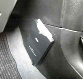 アンテナ部分は説明書通りにダッシュボード中央へ配置。本体は定番(?)の助手席足元付近へ取り付けました。