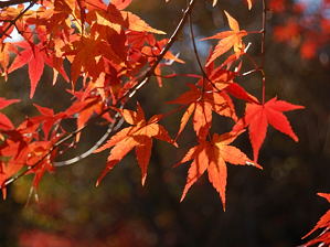 この林道は尾高キャンプ場をジグザグに下る。場内のカエデが見頃だった。山中では、登山者にも、獣にも、出合うことなし。