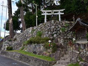 国道に鳥居前を絶ち切られた金峯神社の本殿は階段の上。こちらは蔵王権現。案内板横の木は「かば桜」だとか。滋賀県公文書館の資料では祭神は廣国押民金日命?=安閑天皇だろうか。神仏分離のご時世だったので蔵王権現とは書けなかった。